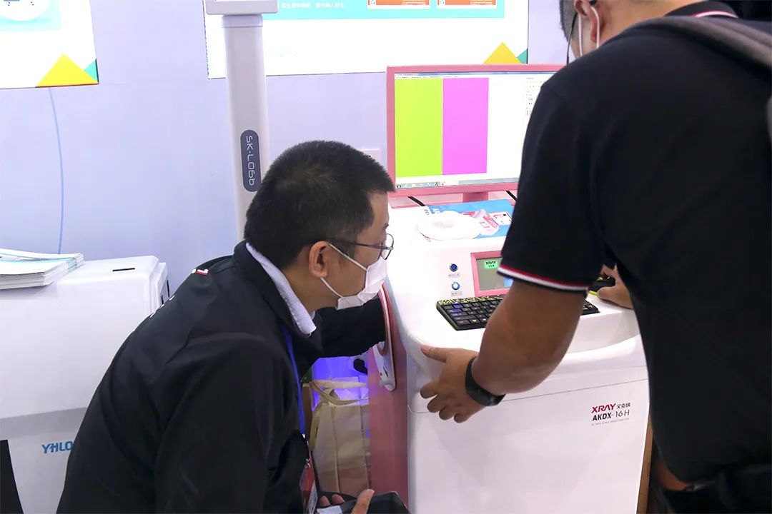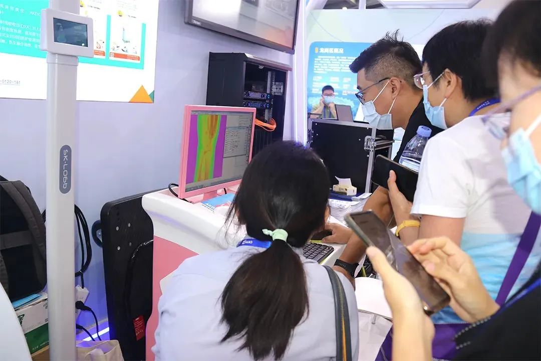 此外,新浪媒體、深圳市龍崗區(qū)政府融媒集團(tuán)等也紛紛來到艾克瑞展位上,對艾克瑞工作人員進(jìn)行采訪報(bào)道,在了解產(chǎn)品后也現(xiàn)場體驗(yàn)雙能X射線骨密度儀效果,現(xiàn)場人頭攢動,熱鬧非凡。
