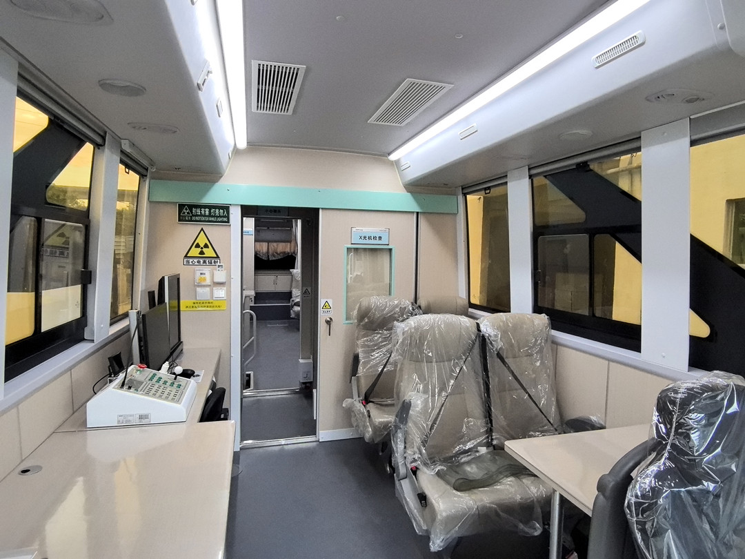 這臺體檢車由深圳艾克瑞生產(chǎn)交付,車長12米、寬4米,寬敞舒適、功能齊全,車內(nèi)載有多臺先進醫(yī)療設(shè)備,包括艾克瑞車載X光機、麥科聽力計、彩色多普勒超聲診斷儀、心電圖機、肺功能儀、血壓計、全自動血細胞分析儀等。